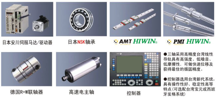 ●三軸采用高精度臺灣線性導(dǎo)軌具有高強(qiáng)度、低噪音、低摩擦性.可做快速位移及獲得最佳的循圓精度。